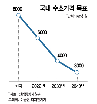 이 프로젝트는 수소 가격을 확 낮춰 수소경제 활성화에도 크게 기여할 수 있다. 해외거점에서 수소 도입이 안정 단계로 접어들면 현재 ㎏당 8000원인 수소 가격이 2030년 4500원, 2040년 3000원으로 점점 낮아진다. 이는 600㎞ 주행이 가능한 현대차의 수소전기차 '넥쏘'를 기준으로 연료비가 현재 84원/㎞에서 2040년 31.5원/㎞로 떨어지는 것이다. 경유차와 전기차 연료비보다 수소차 연료비가 훨씬 낮아지는 셈이다.