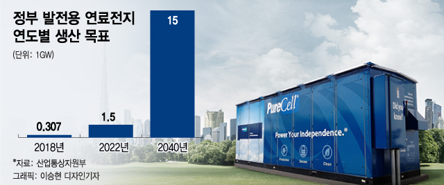 두산퓨얼셀의 중국 사업이 현실화되면 정부가 수소경제 활성화를 천명한 후 2년여 만에 의미 있는 수출 실적이 될 전망이다. 정부는 발전용 연료전지 생산을 2040년까지 내수와 수출(7GW)을 포함해 15GW(기가와트)까지 확대할 계획을 내놓은 상태다.