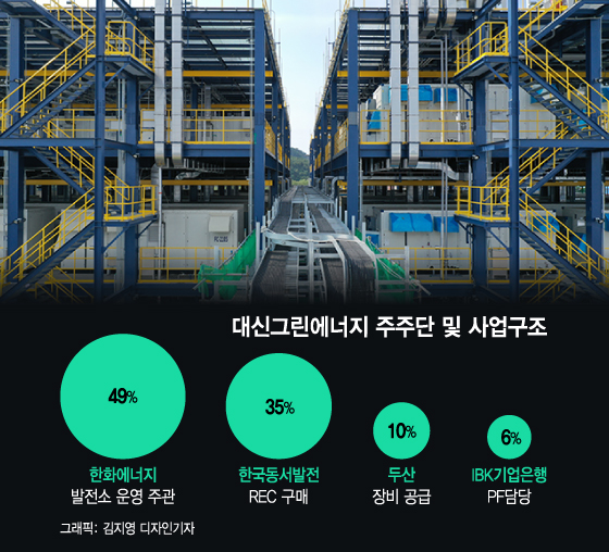 대산그린에너지의 지분 구조가 한화에너지(49%), 한국동서발전(35%), ㈜두산 (10%)으로 나뉘는 것도 '환상 구조'라는 평이다. 한화에너지는 발전소 연료전지의 운전과 정비를 맡고, ㈜두산은 연료전지를 공급하는 한편, 한국동서발전은 여기서 생산한 전력을 매입한다.