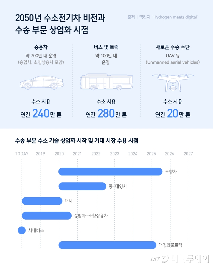 현대차는 이미 스위스 수소 에너지기업 'H2 에너지'와 지난해 만든 합작법인 '현대 하이드로젠 모빌리티'에 2025년까지 총 1600대 규모의 대형 수소전기 트럭을 공급할 예정이다.