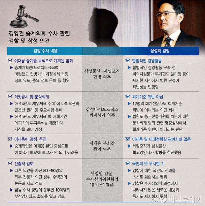 검찰은 지난 6월 수사심의위가 수사중단을 권고한 뒤에도 두 달여 동안 이렇다 할 입장 표명 없이 회계 분야 전문가들의 의견을 듣는다는 취지로 사실상 보완수사를 벌여왔다. 재계와 법조계 일각에서 검찰이 '타깃'을 정해놓고 추가 혐의와 증거를 찾은 게 아니냐는 과잉수사 논란이 끊이지 않았던 이유다. 검찰은 이날 이 부회장에 대해 예정에 없던 배임 혐의를 추가했다.
