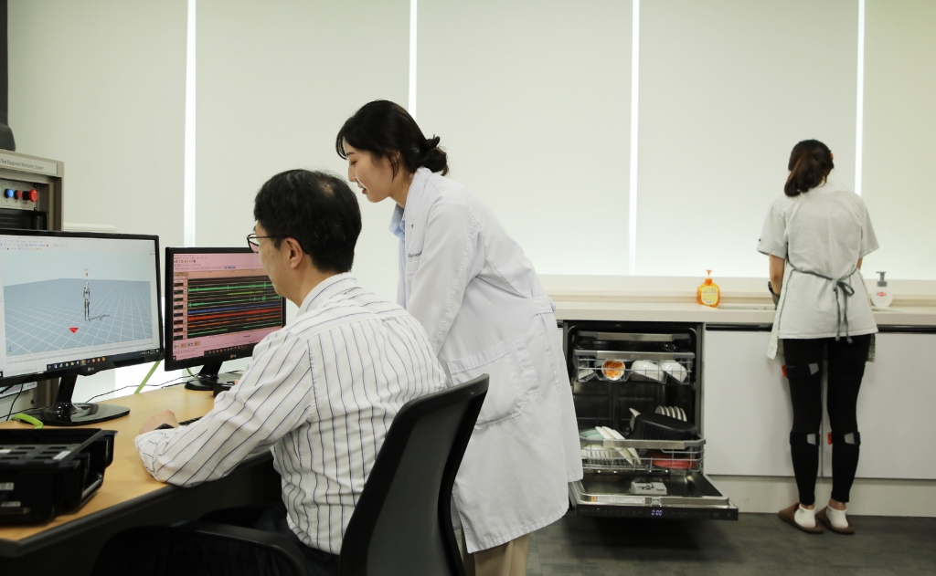 LG전자와 울산과학기술원은 주요 가사노동인 손설거지가 특정 신체 부위를 많이 쓰는 활동이라는 데 주목하고 손목의 회전량, 목·허리를 굽히는 각도와 시간, 팔·어깨·허리를 비롯한 8개 근육의 사용량 등을 과학적으로 측정해 식기세척기가 신체에 대한 부담을 얼마나 줄여주는지 검증했다.