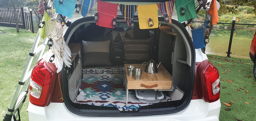2열 좌석을 접으면 공간은 최대 1440리터까지 늘어난다. 길이(최대 1897mm) 상으로는 성인이 누워도 모자람이 없다. 쌍용차는 이날 시승코스 중간 지점에 2열좌석을 제거해 캠핑용으로 개조한 티볼리 에어를 선보이기도 했다.