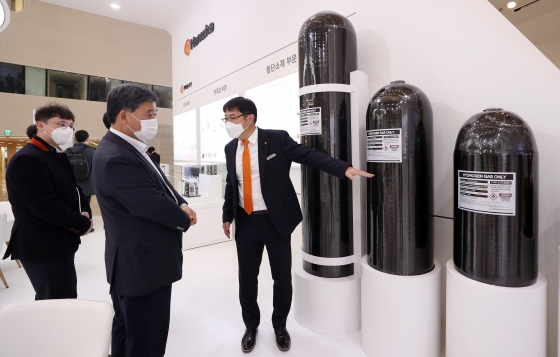 한화 측 전시 담당자는 "드론용, 자동차용, 충전소용 등 수소탱크들을 소개하고 있다보니 다양한 고객군에서 관심을 보이고 있다"고 설명했다.