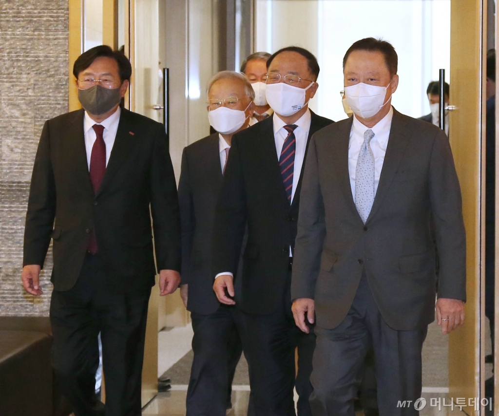 이 자리에는 홍남기 경제부총리를 비롯해 박 회장과 손경식 한국경영장총협회 회장, 김기문 중소기업중앙회장, 강호갑 한국중견기업연합회 회장, 한진현 한국무역협회 부회장이 참석했다.