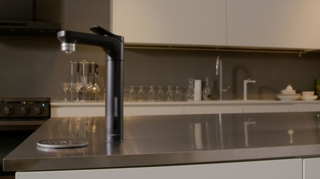 비스포크 정수기는 모듈을 싱크대 아래 설치하는 빌트인 타입의 직수형 정수기로, 블랙·화이트·로즈골드 등 3가지 색상으로 출시됐다. 소비자가 원하는 기능만 선택해 구입할 수 있는 '모듈형 정수 시스템'도 이번에 처음으로 도입됐다. 이 상무는 "다양한 컬러와 교체, 조합이 가능한 비스포크 콘셉트 테마로 주방 경험을 최종 완성시켜주는 아이템"이라 강조했다.