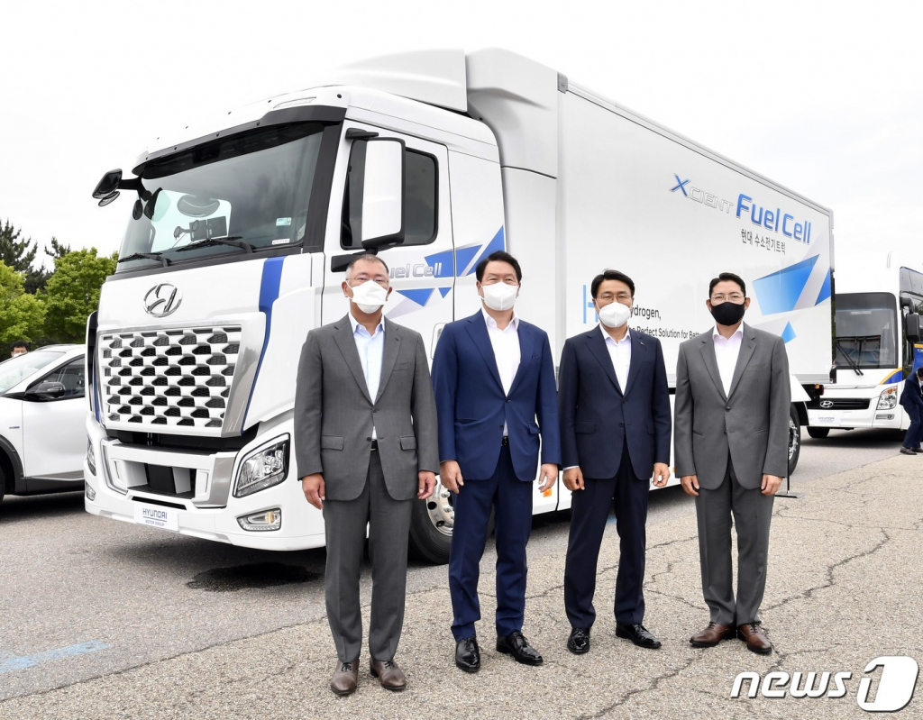 현대차그룹의 수소비전은 2018년말 현대모비스 수소연료전지 기공식에 맞춰 나온 '충주 선언'에서 시작됐다. 당시 정 회장은 "세계 최초로 수소전기차를 상용화한 현대차그룹은 이제 수소전기차를 넘어 수소를 주요 에너지원으로 하는 수소사회를 선도하기 위해 한 단계 더 도약할 것"이라고 선포했다. 2030년 국내에서 연 50만대 규모의 수소전기차 생산체제를 구축하겠다는 중장기 로드맵이 담긴 'FCEV(수소전기차) 비전 2030'이 이때 발표됐다. 2030년 연간 판매 기준으로 글로벌 수소전기차 시장이 약 200만대 규모에 달할 것으로 보고 이 가운데 4분의 1을 차지해 선두로 올라서겠다는 청사진이었다.
