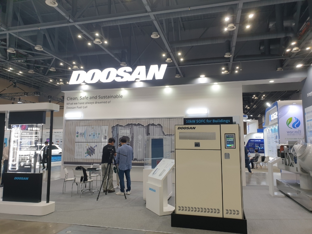 이날 전시에선 ㈜두산 퓨얼셀파워가 개발한 건물·주택용 10kW급 SOFC도 볼 수 있었다. 기존 제품 대비 효율이 40% 높아 세계 최고 수준의 전력 발전효율을 지닌 이 제품은 2022년에 시장에 나올 예정이다.