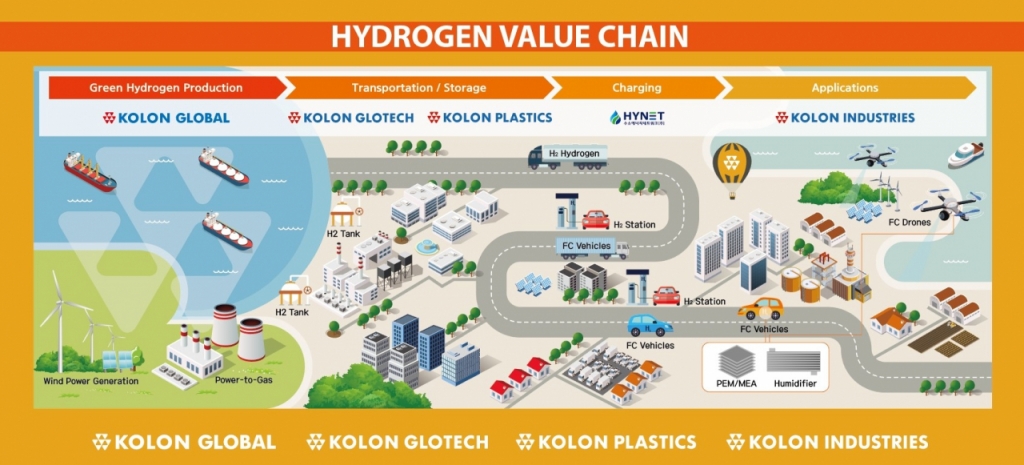 코오롱그룹과 효성그룹은 연구개발 노력과 사업 과정에서 얻게 된 노하우를 통해 기술력을 축적했다. 이를 수소의 생산부터 보관·공급 등을 선순환 구조를 갖추는 기반으로 활용하고 있다.