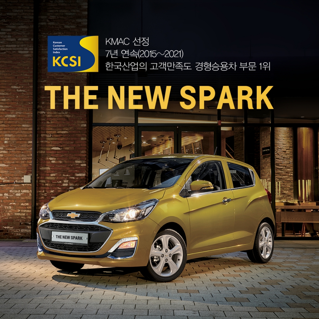 쉐보레 더 뉴 스파크가 '2021년 한국산업의 고객만족도조사(KCSI)' 경형 승용차 부문에서 7년 연속 1위를 기록했다고 8일 밝혔다.