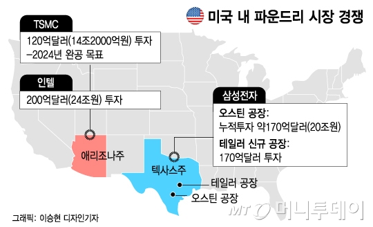 올 상반기 착공 예정인 텍사스주 테일러시 파운드리 신설라인은 2030년까지 대만 TSMC를 넘어 파운드리 시장에서도 세계 1위에 올라서겠다는 '삼성전자 시스템반도체 비전 2030'의 전초기지로 평가받는다. 삼성전자는 파운드리 부문의 입지 확대를 위해선 최대 수요처인 미국 현지 투자가 최선이라고 판단, 지난해 전격적인 투자를 결단했다.