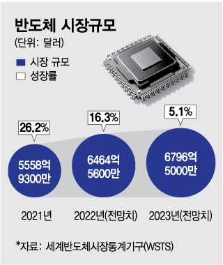 반도체 시장 호황은 내년에도 이어질 것으로 예측됐다. WSTS는 2023년 반도체 시장이 올해 대비 5.1% 성장한 6800억달러(853조원)를 기록할 것이라고 전망했다. 업계 관계자는 "반도체 수요는 갈수록 늘어나는 것에 비해 공정 미세화로 생산이 어려워지며 공급량은 크게 늘어나지 않는 모습"이라며 "당분간 반도체 시장 호황이 계속될 것"이라고 말했다.