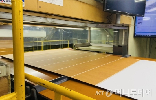 머니투데이가 방문했을 당시 나뭇결무늬의 컬러강판이 나오고 있었다. 만져볼 순 없었지만 육안으로 봤을 땐 원목인지 강판인지 의문이 들 정도였다. 출하되고 있는 제품과 같은 샘플을 전시관에서 만져봤을 때는 질감마저 나무 같았다. 동국제강 관계자는 "기초연구부터 시작해 수많은 시행착오 끝에 확보할 수 있는 기술력"이라고 소개했다.