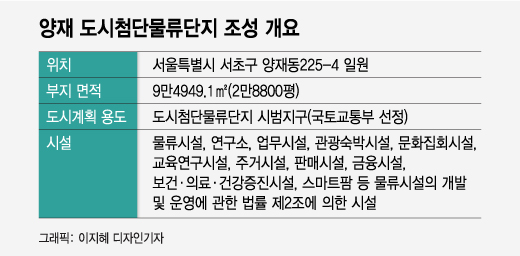 하림그룹이 서울 서초구 양재동 옛 화물터미널 부지에 추진하고 있는 양재도시첨단물류단지 조성사업이 6년여만에 첫 걸음을 뗐다. 4년여간 서울시와의 갈등으로 제자리에 머물던 사업이 처음으로 진전을 보인 것이어서 개발속도에 탄력이 붙을 전망이다.