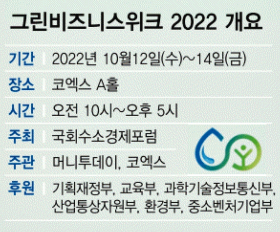 사전등록은 그린비즈니스위크 2022 홈페이지( https://www.khexpo.co.kr/)를 통해 10월10일 자정까지, 이후는 현장 등록하면 된다. 사전 등록할 경우 전시 관람은 무료다.