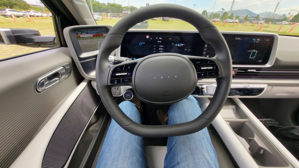 내부는 차량이 운전자를 감싸는 느낌이다. 아이오닉5는 어떻게든 내부 공간을 넓히려는 느낌이었다면, 아이오닉6는 운전자만의 안락한 공간을 느낄 수 있게 만들어졌다.