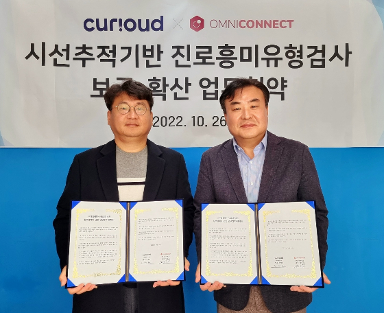 옴니커넥트(대표 양영준)가 큐리어드(대표 안태환)와 '시선추적 기반 진로흥미유형검사'의 보급 및 확산을 위한 업무협약을 체결했다고 26일 밝혔다.