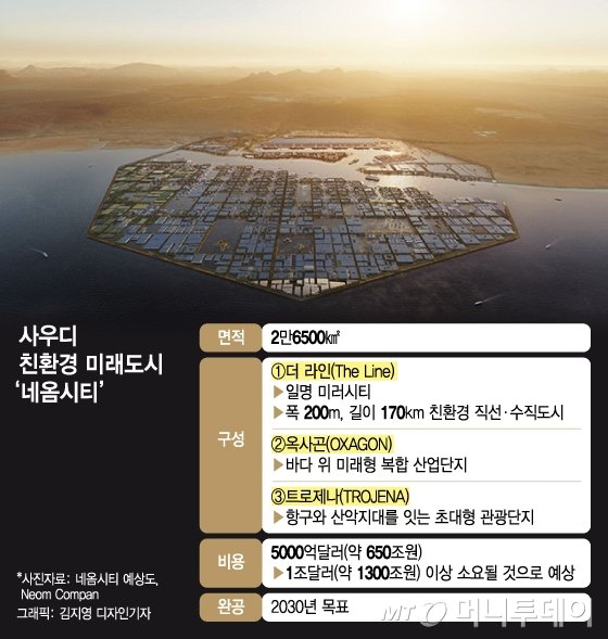 사우디가 친환경 미래 신도시 네옴(NEOM)의 식수 공급망 해결을 위해 국내 관련 기업들을 연쇄 접촉한 것으로 확인됐다. 무함마드 빈 살만 왕세자 방한 기간 체결된 양국의 사업 협력을 시작으로 '네옴특수'가 수처리 등 보다 다양한 산업의 한국 기업들로 확대될 것이라는 기대가 커지고 있다.