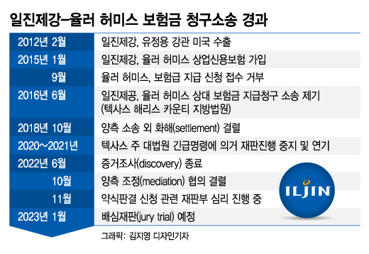 결국 일진제강은 미국 텍사스 주 해리스 카운티 지방법원에 보험금 지급 청구소송을 제기했다. 피고측은 율러 허미스 미국법인과 해당 상업신용보험을 판매한 에이전트 D씨다. 하지만 소송은 코로나19(COVID-19) 등으로 인해 지연되면서 지금껏 판결이 나오지 않는 상황이다.