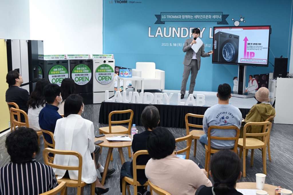 LG전자(108,800원 ▼3,700 -3.29%)가 세탁 문화 세미나 '런드리 랩'(Laundry Lab)을 개최한다. 고객들은 LG전자의 트롬 6모션 건조기를 직접 체험하고, 더 나아가 세탁부터 건조까지 의류관리에 도움이 되는 다양한 정보를 공유할 수 있다.