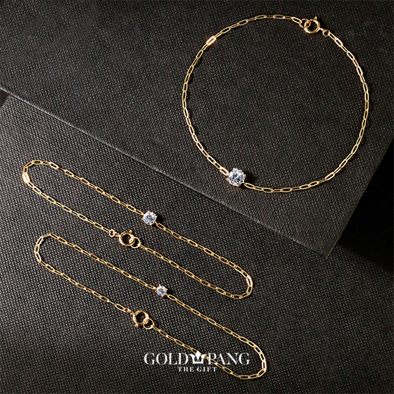 이번에 출시한 발찌·팔찌는 라운드 브릴리언트 컷으로 디자인한 제품이다. 색상은 △옐로우골드 △핑크골드 △화이트골드, 3가지로 나왔다. 팔찌는 △1부(3㎜) △2부(4㎜) △5부(5㎜) 등으로 선택 가능하다.