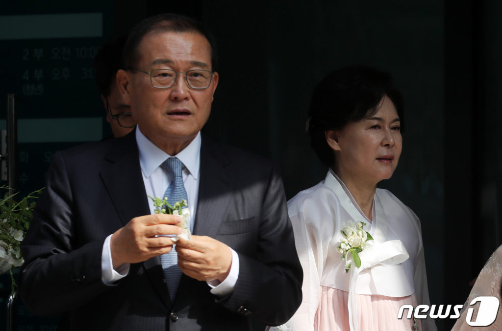 결혼식에 앞서 신랑·신부 측을 대표해 백지영 전 앵커와 정몽원 회장의 배우자 홍인화 씨는 취재진을 향해 "축하해주셔서 감사하다"는 짤막한 인사를 했다.