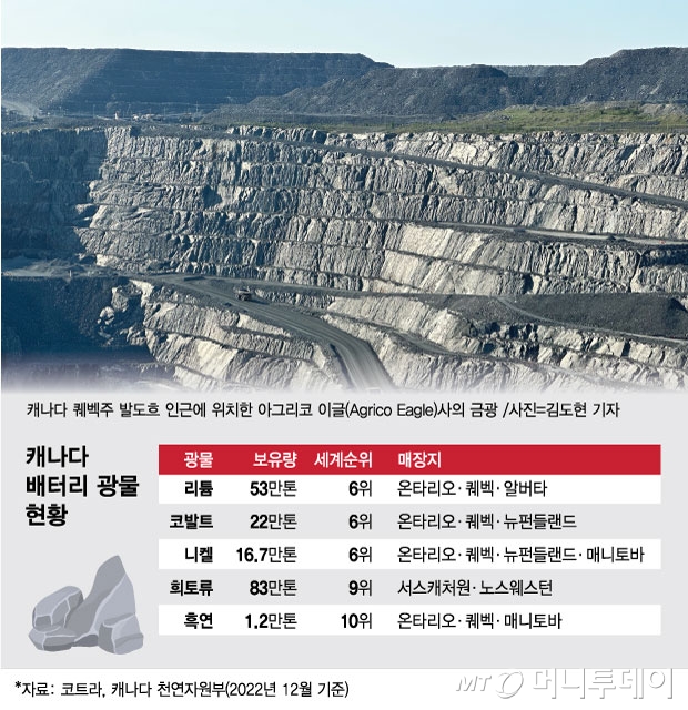 현지에서 만난 주요 광산개발 관계자들은 리튬·니켈 등에 대해 "광업의 미래(Future of mining)"라고 입을 모았다. 우라늄·철광석·아연 등이 다량 매장된 서부에서 온타리오·퀘벡 등 동부지역으로 캐나다 광업의 중심지가 바뀔 것이란 예측도 나온다. 전기차·배터리 시장이 급성장하고 이에 따른 광물 수요가 급증했을 뿐 아니라, 미국 인플레이션 방지법(IRA) 발효로 북미지역의 역내 생산의 중요성이 높아진데다 연방·주 정부의 관련 밸류체인 산업 육성 의지가 크다는 이유에서다.