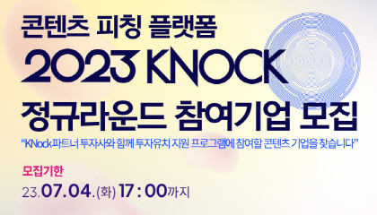콘텐츠 기업 투자유치 플랫폼 KNock(이하 케이녹)이 2023 정규라운드에 참여할 우수 콘텐츠 기업을 모집한다고 밝혔다.