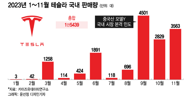 지난 8월까지만 해도 국내에서 테슬라의 입지가 예전만 못하다는 평가가 이어졌다. 국내 전기차 왕좌에 앉았던 테슬라는 2021년 현대자동차 아이오닉5와 기아 EV6 등 경쟁 전기차량이 출시된 이래 선두 자리를 내줬다. 주력 모델인 모델3가 지난해 7000여대 팔리면서 명맥을 이어왔지만, 올해는 지금까지도 단 552대 파는데 그치는 등 인기가 식었다. 올해 1~8월 테슬라 전체 판매량도 4546대로 급격히 쪼그라들었다.