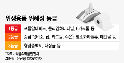 제정안은 위해 우려가 있는 위생용품의 위해성 등급 신설과 회수 폐기에 대한 세부절차를 마련하는 내용이다. 위해성 1등급은 1급 발암물질로 알려진 포름알데히드, 폴리염화비페닐(PCBs), 6가크롬 등이고 2등급은 비소·납·카드뮴·수은 등 중금속이나 염소화페놀류, 메탄올 등이다. 위해성 등급을 받은 물질이 검출되면 부적합 긴급 통보를 받은 날로부터 1등급은 1일 이내, 2등급은 2일 이내, 3등급은 3일 이내 회수 명령을 이행해야 한다.