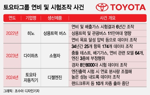 토요타 아키오 회장은 지난달 30일 나고야시에서 열린 기자회견에서 회사 차원의 책임을 인정했다. 아키오 회장은 "제조를 통해 사회에 공헌한다는 창업의 원점을 잊고 있었다"며 "고객을 불편하게 하고 심려를 끼친 점, 깊이 사과드린다"고 했다. 일본 현지 언론은 자회사에서 발생한 부정이 토요타의 개발 기간 단축 압박 탓에 일어난 것으로 분석하고 있다.