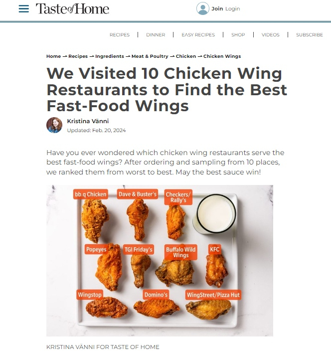 테이스트 오브 홈은 미국 전역의 치킨 패스트푸드 레스토랑 7곳을 찾아 후라이드 치킨을 시식하고 그 순위를 매긴 결과 BBQ를 최고의 치킨으로 꼽았다. BBQ는 치킨 이외에도 최고의 윙(날개) 제품에서도 10개의 유명 치킨 브랜드 중 BBQ를 1등으로 꼽았다. 글을 작성한 크리스티나 반니 작가는 미국에 널리 알려진 요리 전문가다.