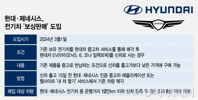 이 제도로 차량을 반납한 기존 전기차 오너들도 신제품을 출고가보다 낮은 가격에 살 수 있다. 예를 들어 현대차·제네시스 전기차를 보유한 차주가 인증 중고차 서비스에 본인 차량을 팔면 매각대금 외에 별도 보상금을 받는다. 보상금은 매각대금의 최대 2%다. 이에 더해 현대차의 신형 EV(아이오닉 5·6, 코나 일렉트릭)도 50만원을 할인받을 수 있다.