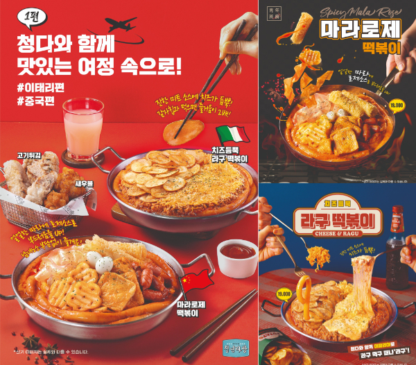 즉석 떡볶이 전문 브랜드 청년다방이 '청년다방과 함께 떠나는 미식 여행'을 콘셉트로 이탈리아, 중국 대표 소스를 활용한 떡볶이 2종과 함께 즐기기 좋은 사이드 메뉴 2종을 새로 출시했다고 20일 밝혔다.