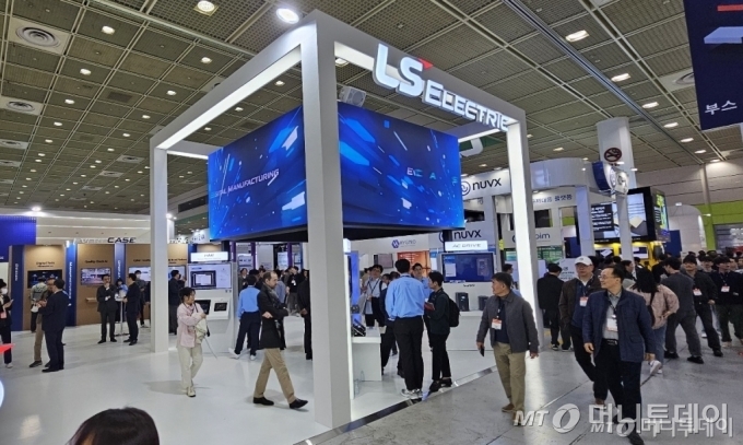 전시회에서 가장 주목받은 기업은 LS일렉트릭이다. 총 360제곱미터(㎡), 40개 부스로 국내 기업 중 최대 규모의 전시관을 차리고 미래형 공장 솔루션을 마련했다. 주력 제품인 PLC(범용 제어 장치), HMI(생산 장비 점검 기기) 외에도 OHT(웨이퍼 운반 기기)나 AI를 활용한 솔루션 등을 전시했다. 전날 오전에는 구자균 LS일렉트릭 회장도 직접 전시관을 방문했다.