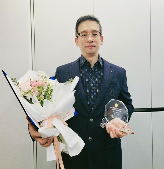 윤석구 소버린월렛 대표가 머니투데이 주최의 '2024 제10회 대한민국 우수기업대상'에서 '4년 연속상'으로 '블록체인 플랫폼' 부문 '우수기술대상'을 비대면 수상하고 기념사진을 촬영 중이다.