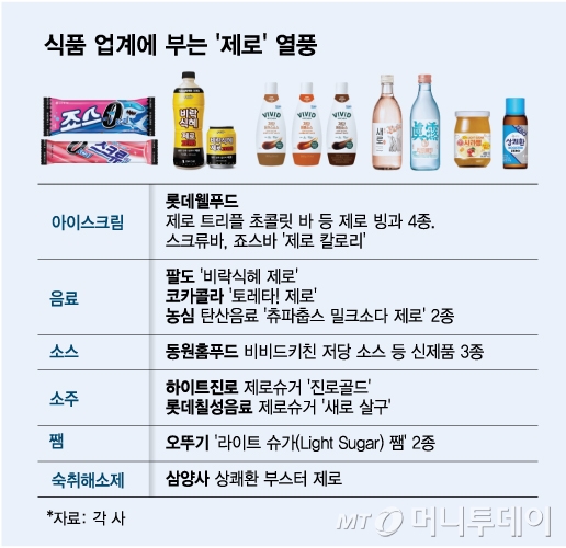 식품 업계에 '제로(ZERO)' 열풍이 계속 되고 있다. 건강에 대한 소비자들의 관심이 늘면서 다양한 제품군으로 영역이 확장되고 있는 모습이다. 단순히 칼로리를 제한하는 것을 넘어서 설탕과 탄수화물, 알코올 등 특정 성분을 제거하거나 최소화하는 제품들이 소비자들 사이에서 인기를 끌고 있다. 식품 업계는 제로 열풍이 계속될 것으로 전망하고 관련 신제품을 선보이고 있다.