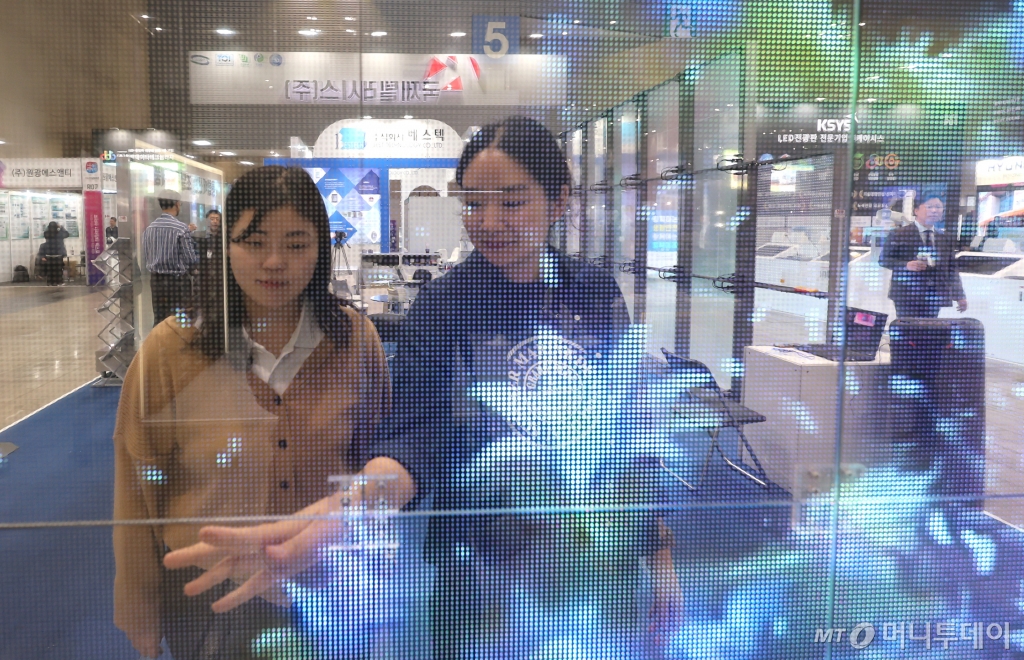 ![[고양=뉴시스] 전진환 기자 = 17일 경기도 고양시 킨텍스에서 열린 코리아 나라장터 엑스포 2024에서 관람객들이 투명LED디스클레이를 살펴보고 있다. 2024.04.17. amin2@newsis.com /사진=전진환](https://thumb.mt.co.kr/cdn-cgi/image/f=avif/21/2024/04/2024042315053915623_1.jpg)