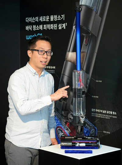 아사프 오오이(Asaph Ooi) 다이슨 무선청소기 부문 제품 개발 책임 엔지니어는 워시G1 물청소기로 흑미·미역국·사인펜 등으로 오염된 바닥을 청소하는 모습을 선보였다. 청소기로 1~2회 오염된 바닥을 훑고 지나가자 오염물질이 모두 사라졌다.