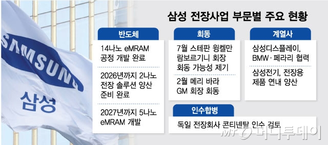 업계 관계자는 "전장용 반도체는 모바일·컴퓨터 시장과 다르게, 아직 확고한 입지를 확보한 기업이 없다"라며 "삼성전자가 적기에 솔루션을 마련할 수 있다면 대형 완성차 고객사를 조기 확보하고, 매출 비중을 끌어올릴 수 있을 것"이라고 말했다.