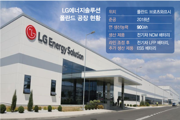 LG에너지솔루션(LG엔솔)이 폴란드 공장의 생산라인 전환을 통해 전기차용 NCM(니켈·코발트·망간) 배터리와 LFP(리튬·인산철)배터리, ESS(에너지저장장치) 배터리 등 3종의 배터리를 동시 생산한다. 3개 제품을 생산하는 LG엔솔의 첫 공장이 된다. 무리한 증설 대신 기존 생산라인의 최적화를 통해 공장 효율성을 끌어올려 내실을 다지는 회사 전략의 상징적 공장이 된다.