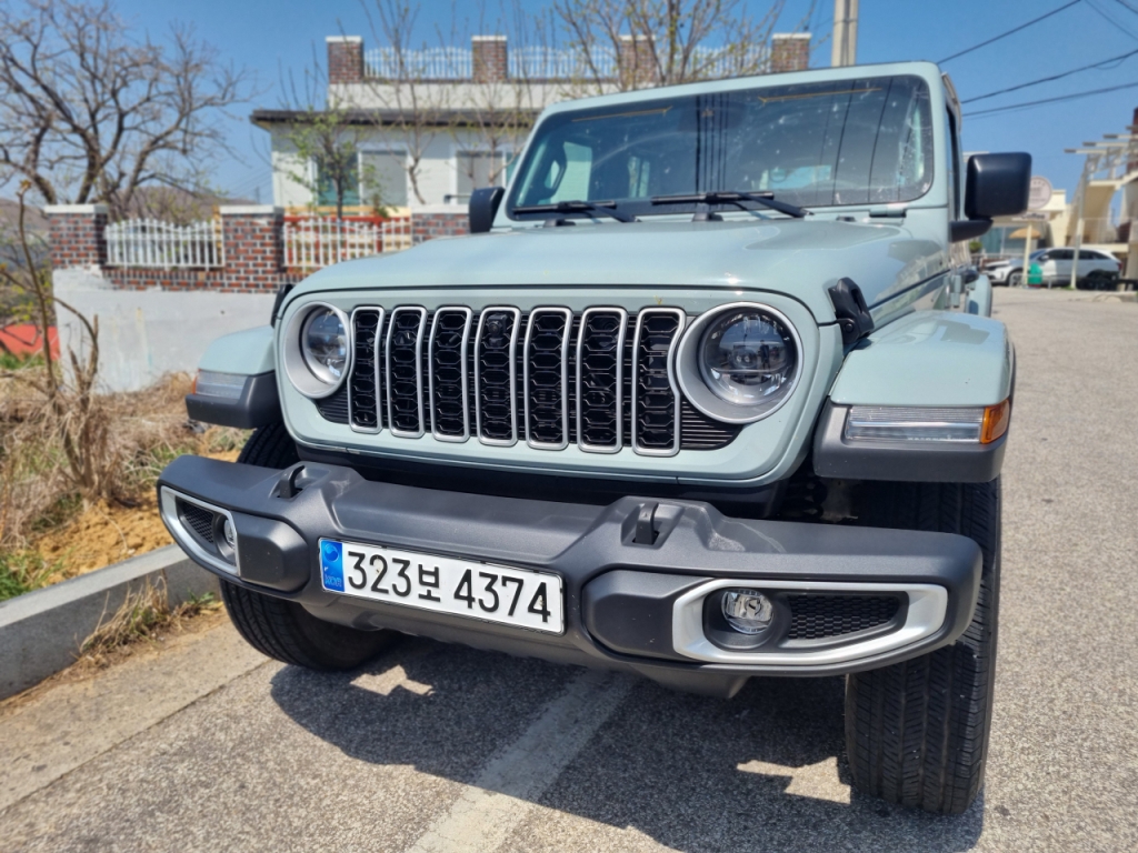 거대한 차체와 높은 차고에 먼저 압도된다. 오프로드를 달려보고 싶게 만드는, 모험심을 자극하는 외관은 여전하다. 차량 전면부에는 지프를 상징하는 세븐-슬롯 그릴, 랭글러 고유의 원형 헤드램프가 존재감을 강조한다. 네 바퀴 위 큼지막한 휀더, 각진 형태의 차체 프레임 등이 단단한 느낌을 준다.