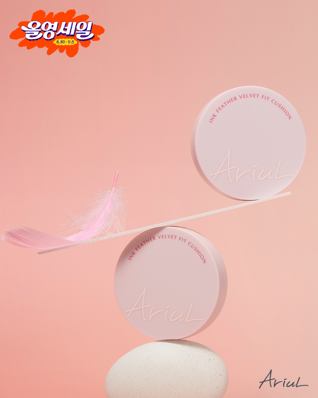 출시하자마자 9월 올리브영 세일 프로모션 제품으로 선정된 아리얼의 '잉크 피더 벨벳 핏 쿠션'은 오는 8월 30일부터 9월 5일까지 27% 할인 특가로 만나볼 수 있다.