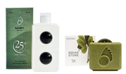 '탈모예방 및 발모 촉진 두피 마사지비누' 명칭으로 특허 받은 '인디언스톤 샴푸바'와 '샴피 톡톡 고타엑서사이저 샴푸'
