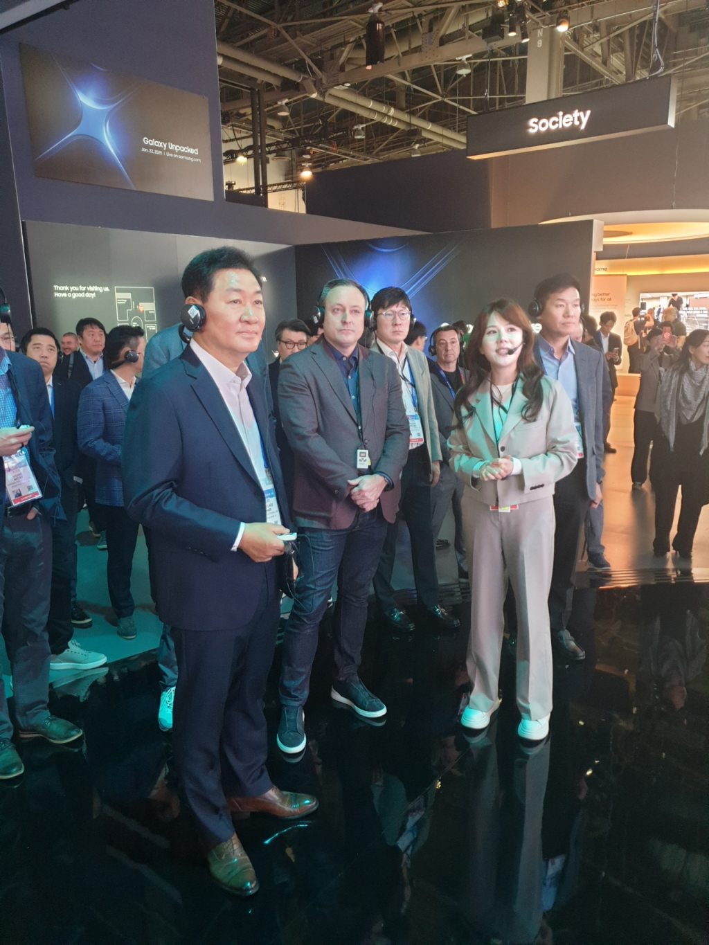 한국 CEO(최고경영자) 가운데선 유영상 SK텔레콤 사장이 가장 먼저 삼성전자 부스를 찾았다. 이후 제이슨 본피그 미국 베스트바이 수석 부사장(senior executive vice president of customer offerings and fulfillment)이 삼성부스를 방문했다.