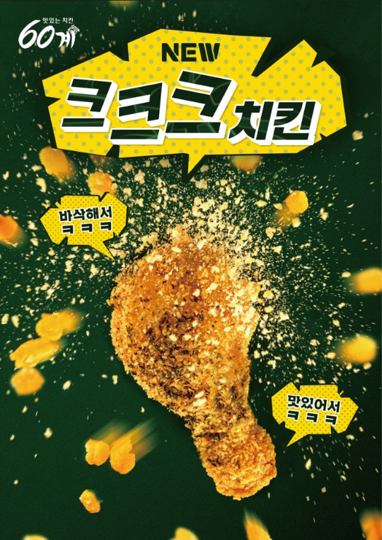 크크크치킨은 60계치킨의 베스트셀러로 바삭한 후라이드치킨에 크럼블을 입혀 더 크런치하고 더 크리스피한 맛이 특징이다. 치킨 본연의 매력인 '바삭함'을 맛볼 수 있으며 3가지 디핑 소스(크크크소스, 핫크크크소스, 콘마요소스)가 동봉되어 보다 다채로운 맛을 느낄 수 있다.