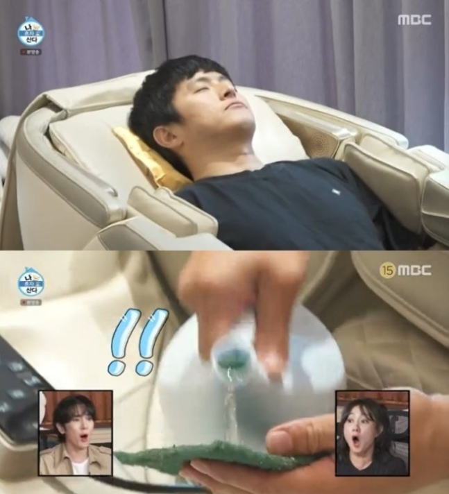 #지난해 기안84가 4년간 사용한 안마의자를 청소하는 장면이 방송에 나왔다. 안마의자 곳곳에 손때와 얼룩이 묻어 있었다. 바느질로 보자기를 덧대 얼룩을 가려봤지만 실패하고, 주방 세제와 수세미도 모자라 락스까지 투입했다. 락스에 가죽이 녹아 안마의자에서는 정체 모를 가루까지 떨어졌다.