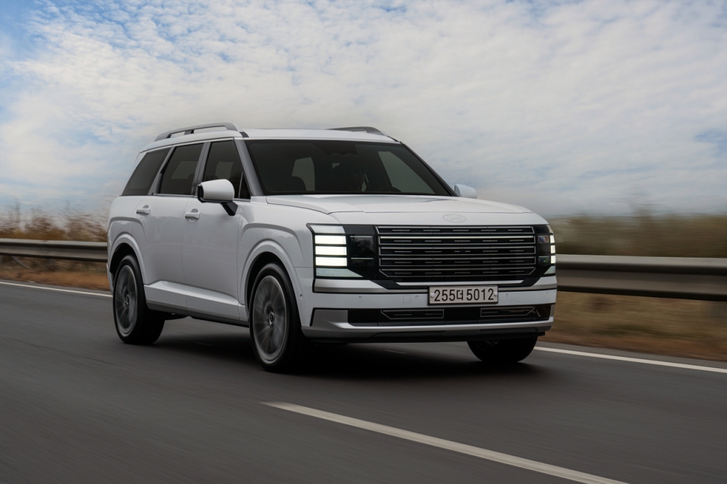 지난 22일 경기 고양시와 인천 영종도를 오가는 왕복 약 100㎞ 구간에서 신형 팰리세이드를 탔다. 시승차는 2.5 가솔린 터보 7인승 모델에 트림은 최고급 사양이 적용된 캘리그래피다. 첫인상부터 강인하다. 수직 주간주행등(DRL)과 직사각형에 가까운 라디에이터 그릴, 직선으로 떨어지는 전면 디자인이 웅장한 느낌을 준다.