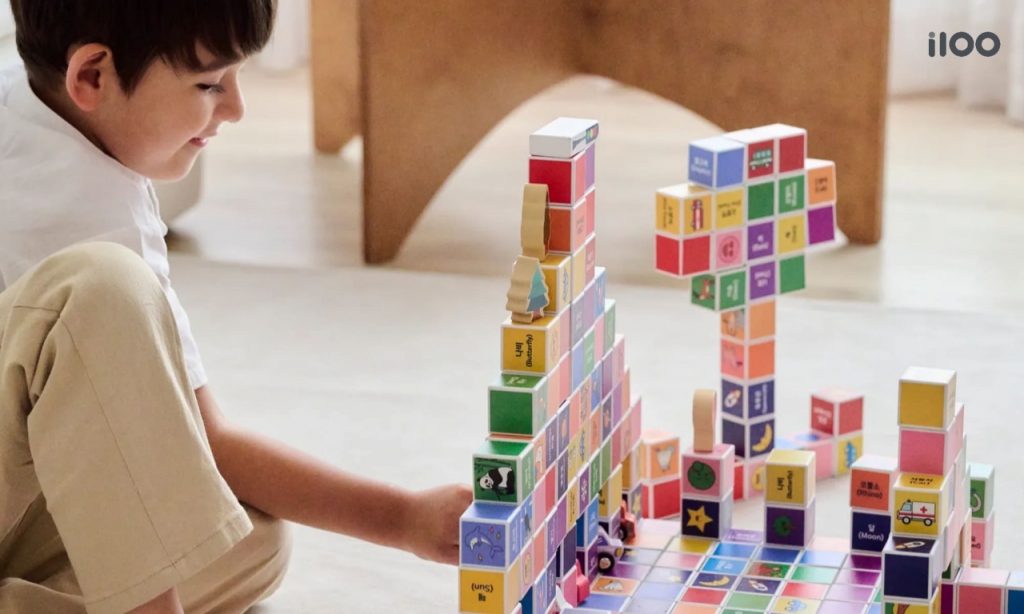i100 '브레인러닝 사각 큐브 자석블럭'은 아이의 발달이 본격적으로 시작되는 12개월부터 사용할 수 있는 제품이다. 컬러, 그림, 한글, 영어로 구성된 64가지 자석블럭 콘텐츠를 통해 신체, 정서, 사회, 언어, 인지 능력을 자연스럽게 키울 수 있다.