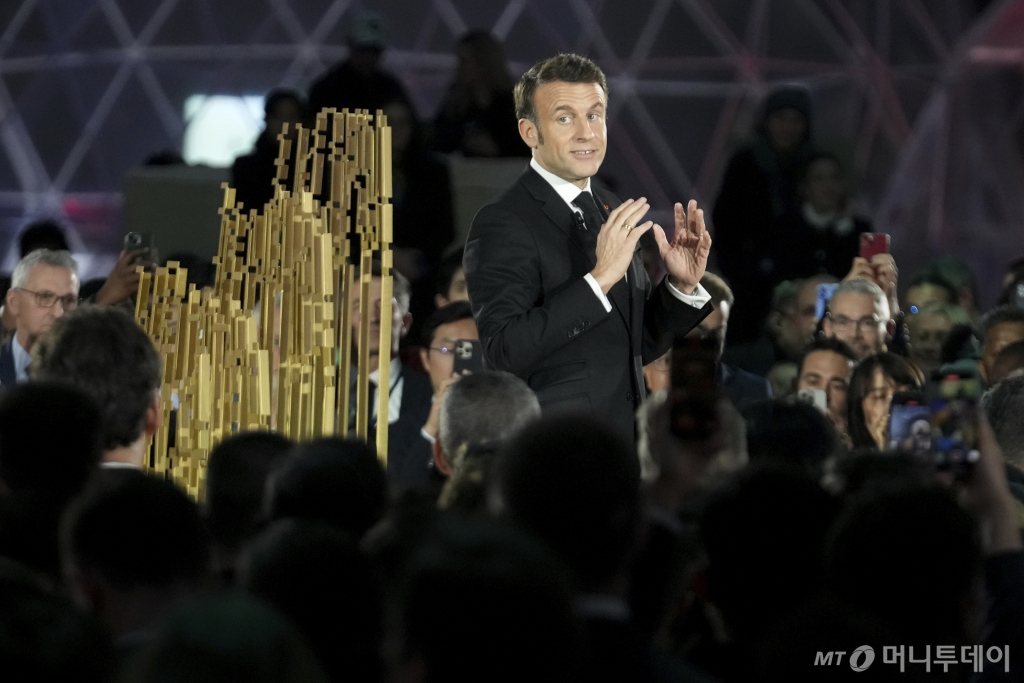 ![[파리=AP/뉴시스] 에마뉘엘 마크롱 프랑스 대통령이 10일(현지 시간) 프랑스 파리 그랑팔레에서 열린 제3차 인공지능(AI) 행동 정상회의 1일차를 마무리하며 연설하고 있다. 2025.02.11. /사진=민경찬](https://thumb.mt.co.kr/cdn-cgi/image/f=avif/21/2025/02/2025021209442753413_1.jpg)